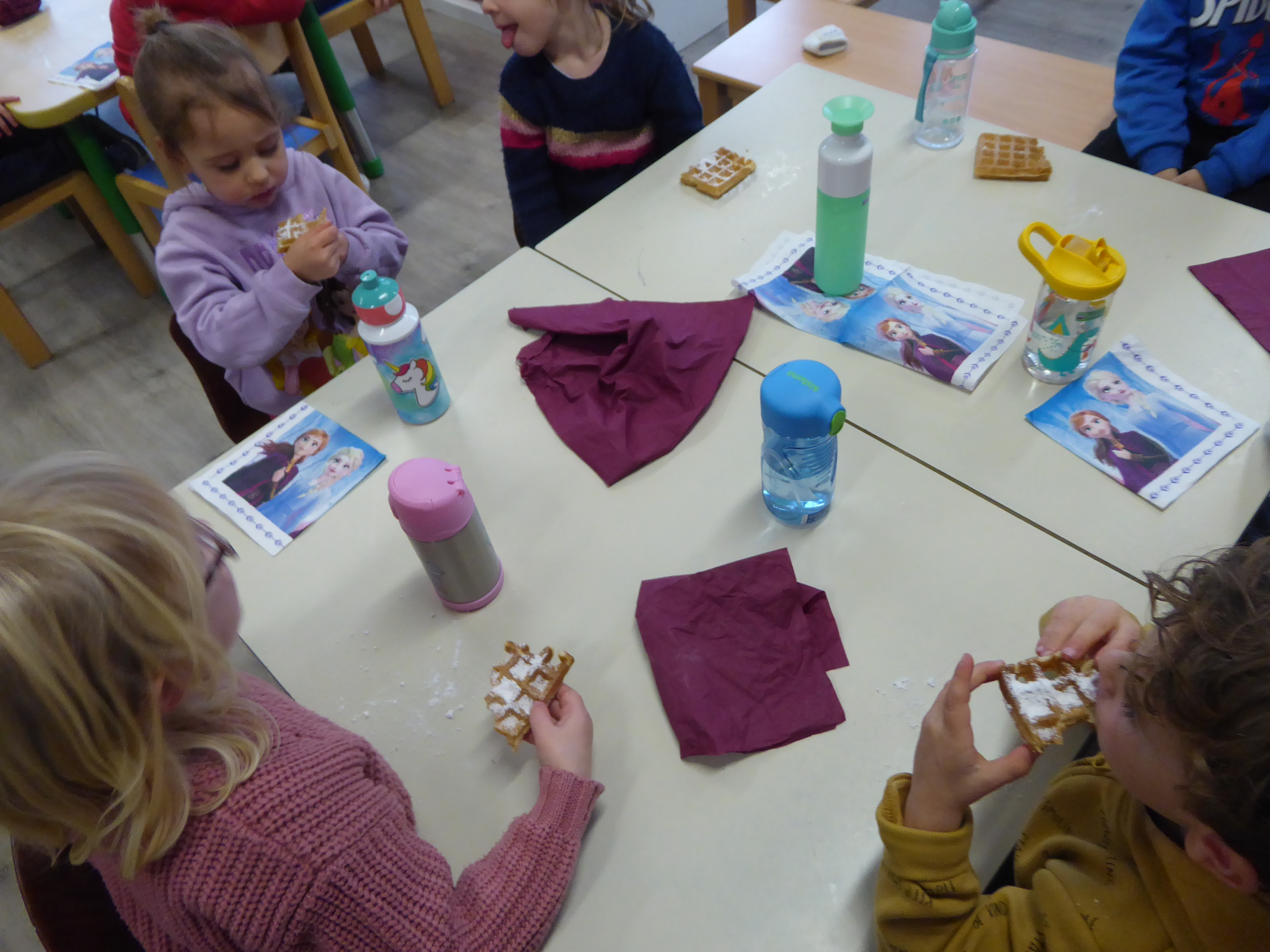Ter gelegenheid van de verjaardag van de juf, maakten we wafeldeeg zodat we nadien lekker konden smullen.